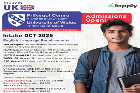 UK - MOI Accepted & Study Gap Up to 8 Years - Apply for Jan 2026 Intake at Wrexham University, Wales!
